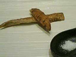 ■名物牛蒡天ぷら・食べてから撮影(汗) ■夜はカウンターに昼はビュッフェ台 ■AEN名物有機栽培ビール