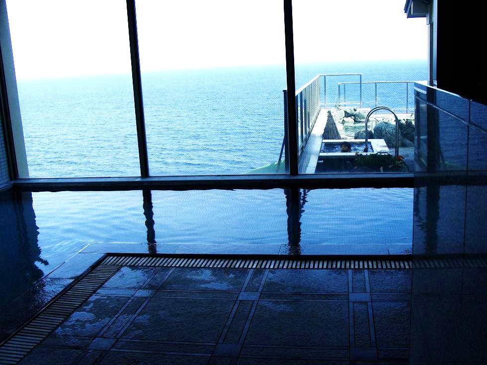 で、屋上にある露天風呂は海を眼前に見る事ができる、最高に良い