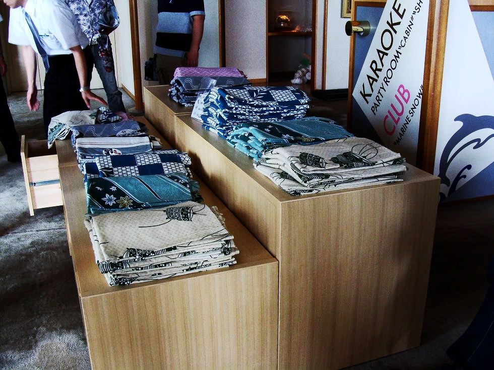 ■いよいよ旅館にチェックインです。浴衣をサイズ、柄で選ぶ事ができ
