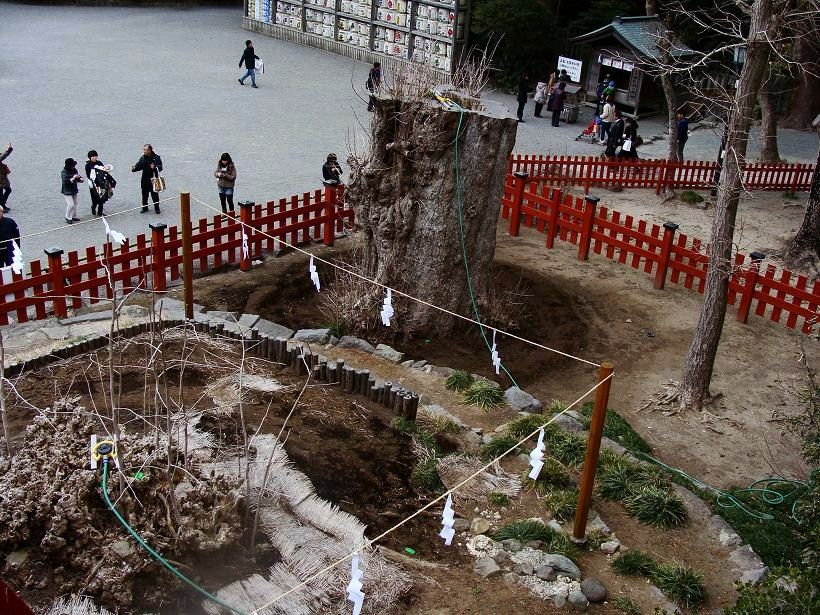 ■階段を降りる途中では、台風で根から倒れてしまった神木の